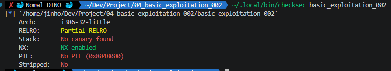 PIE: No PIE → 바이너리 로드 주소 고정 (0x8048000)