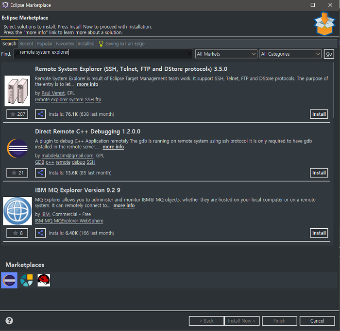 • 검색창에 "remote system explorer" 입럭 후 검색