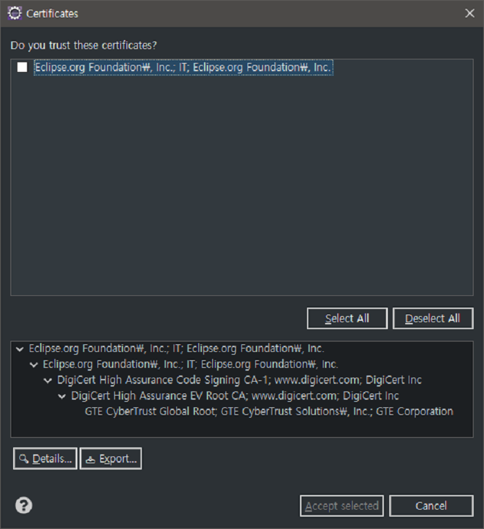 • 설치 중 자격증명 신용 동의 창이 떠도 동의하고 진행해준다.