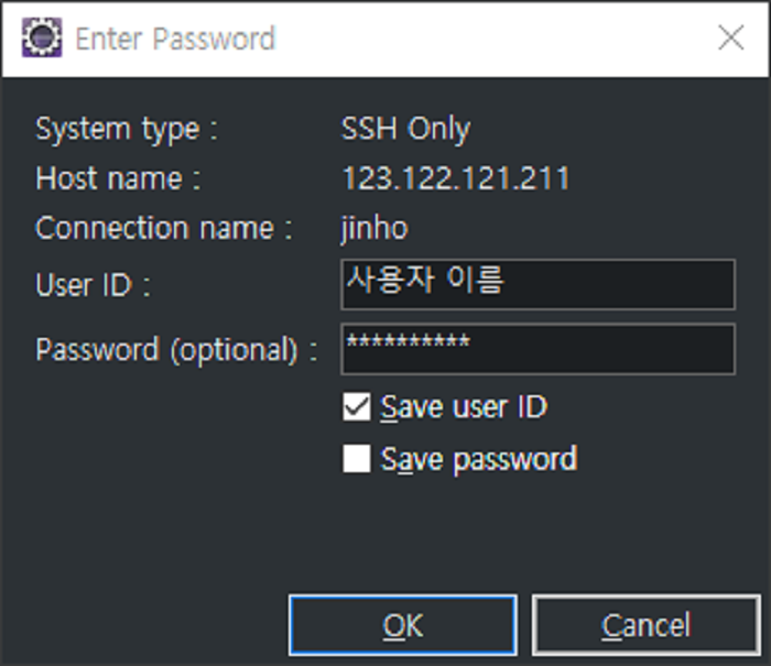 • 원격 접속을 FTP로 하려면 "FTP Only", SFTP 접속은 "SSH Only"를 선택해 진행하면 된다. SFTP 연결을 위한 "SSH Only" 선택해 진행하였다.