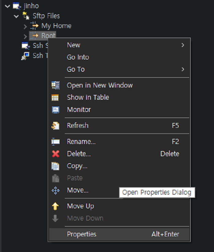 • 기본 경로 지정을 위한 설정 "Root" -> "Properties"