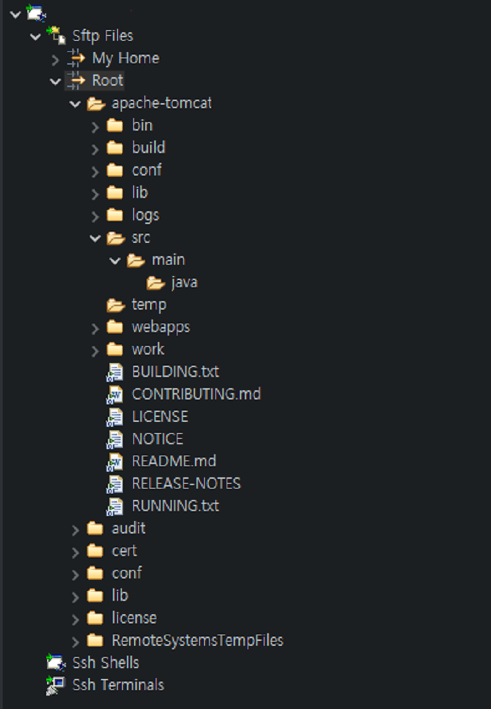 • 설정 완료 후 아래 그림처럼 sftp 연결을 확인할 수 있다.
