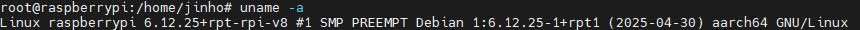 Linux raspberrypi 6.12.25+rpt-rpi-v8 #1 SMP PREEMPT Debian 1:6.12.25-1+rpt1 (2025-04-30) aarch64 GNU/Linux