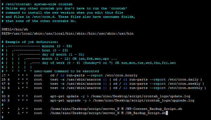 스크립트 파일은 각각 백업주기를 관리하기 쉽게 두개를 제작하였다.