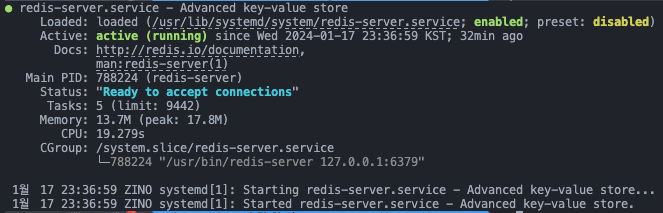 127.0.0.1:6379 ๊ธฐ๋ณธ ์ค์ ํฌํธ๋ก ์คํ ํ์ธ
