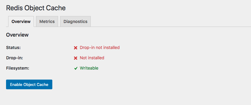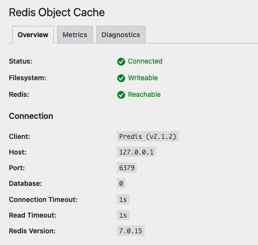 - wp-admin โ ์ค์ โ Redis โ "Enable Object Cache" ๋ฒํผ ํด๋ฆญ